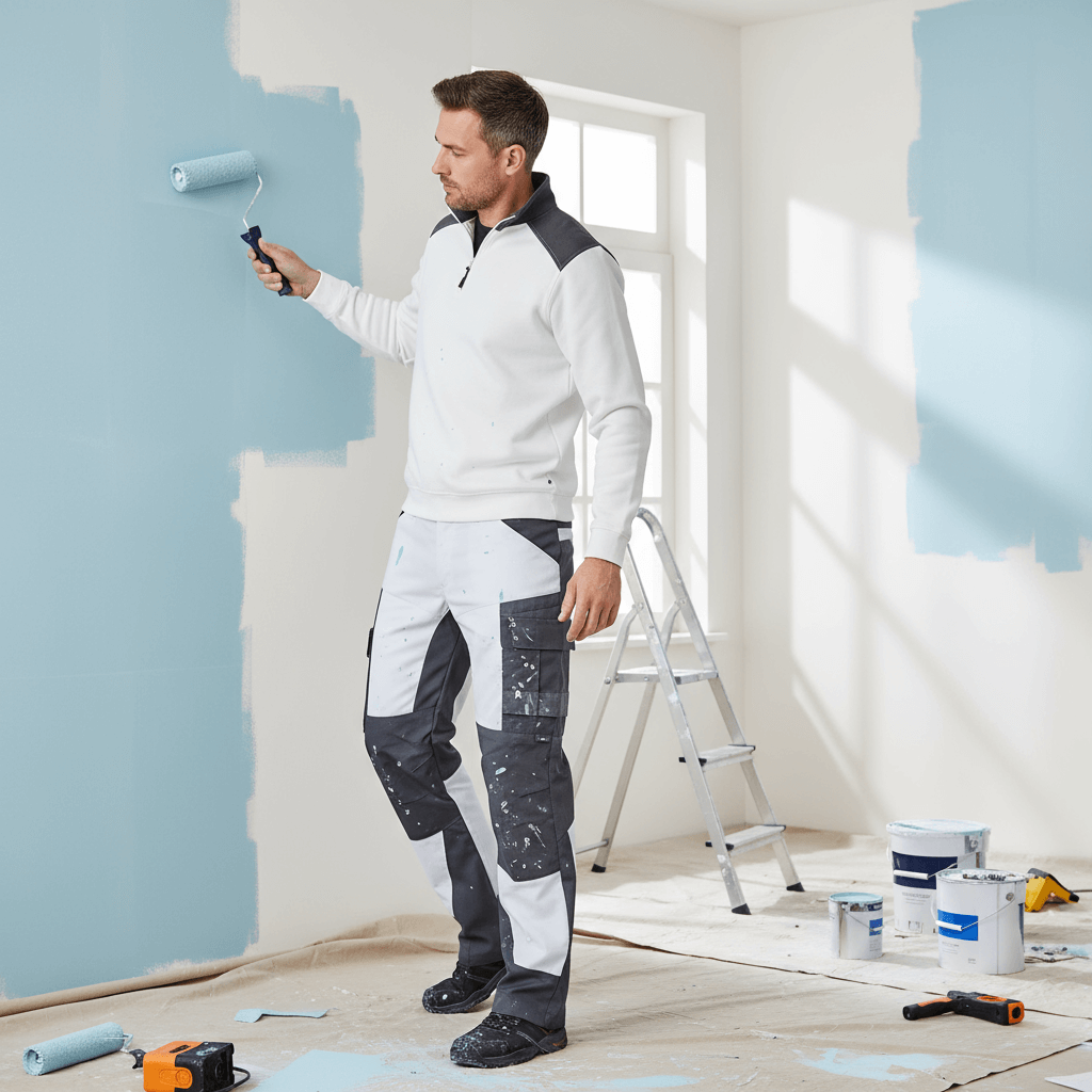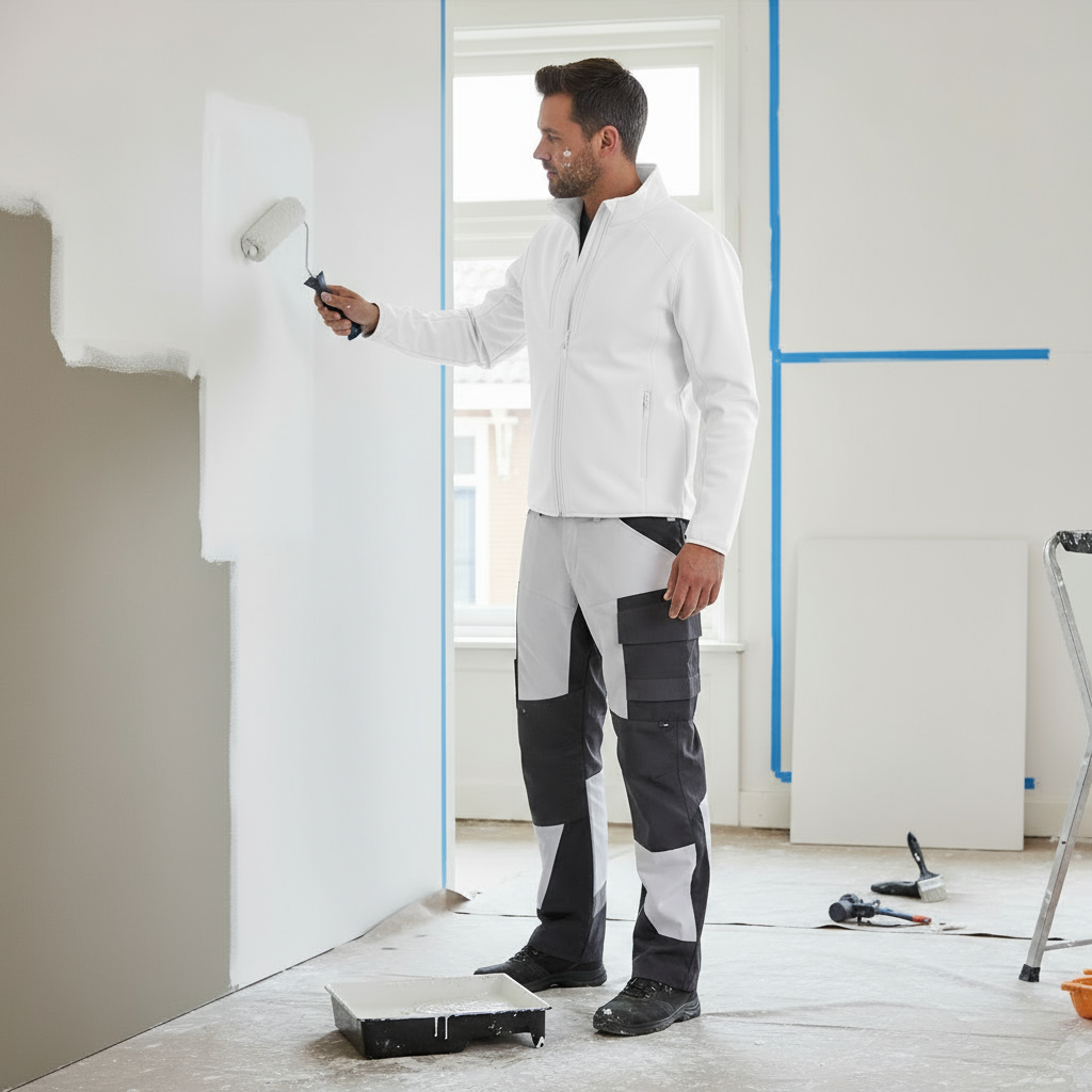 Goede kleding begint bij het juiste materiaal. Voor schilders is lichtgekleurde, ademende stof belangrijk. Denk aan witte of grijze werkbroeken met stretch en kniestukken. Zakken voor je kwasten of plamuurmes mogen niet ontbreken. Shirts moeten goed wasbaar zijn en niet te warm worden bij binnenwerk.